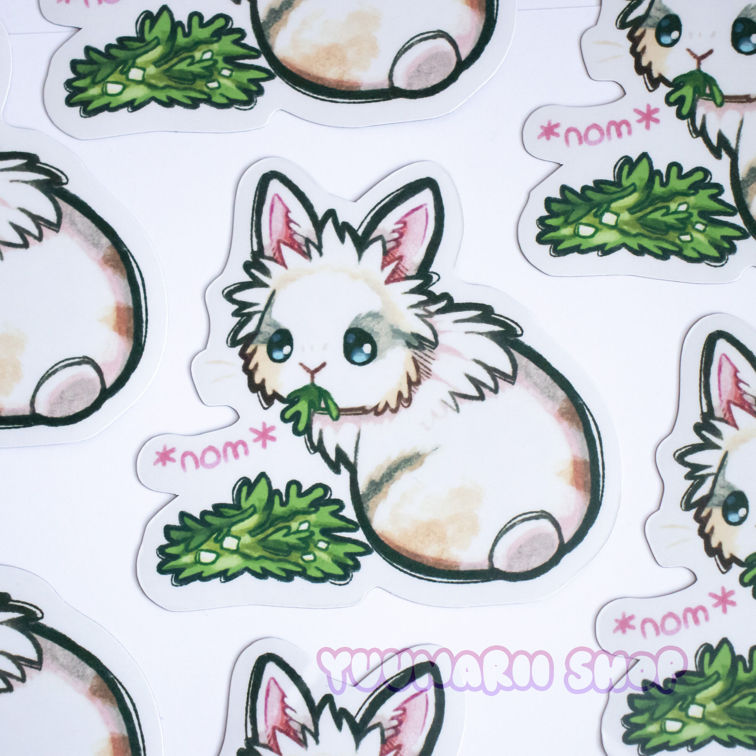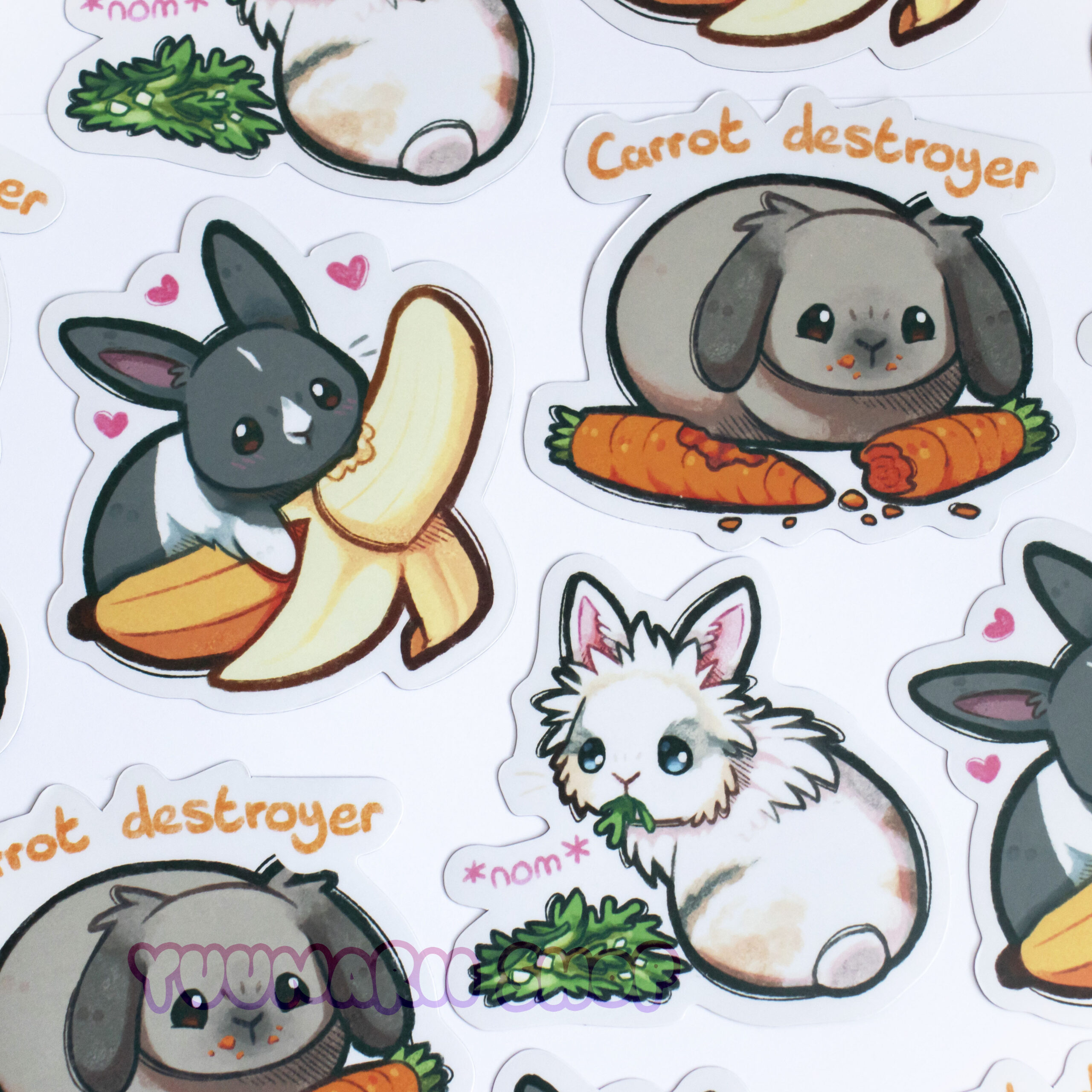 Three extremely adorable bunny fridge magnets. These vinyl magnets will stick to fridges, dishwashers, and devices of similar materials. Magnets available separate or as full set of 3. The banana and leafy greens bunnies were modelled after my own pet bunnies Hazel and Mochi respectively.