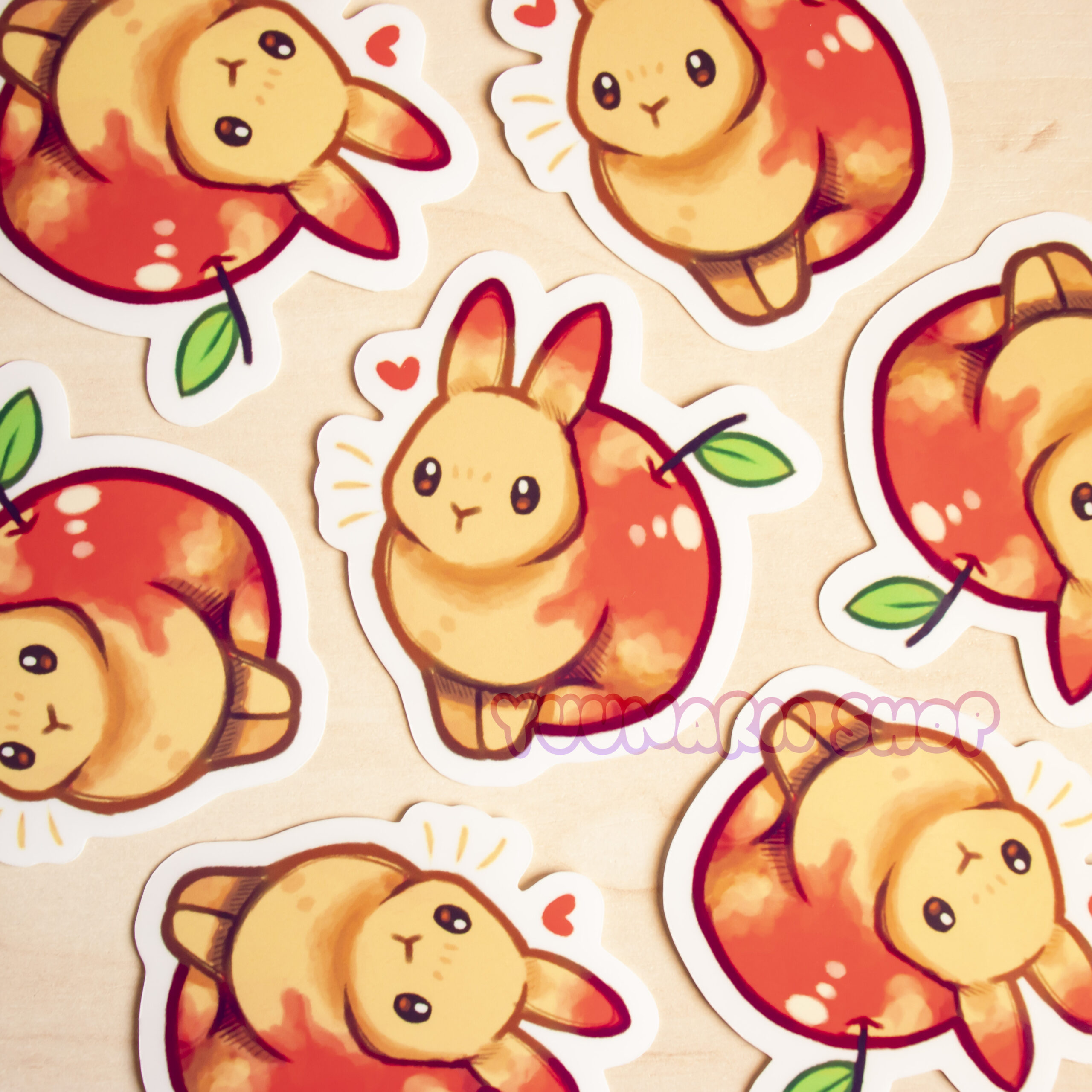 A collection of 6 different delicious, adorable, fruit themed bunny vinyl stickers.