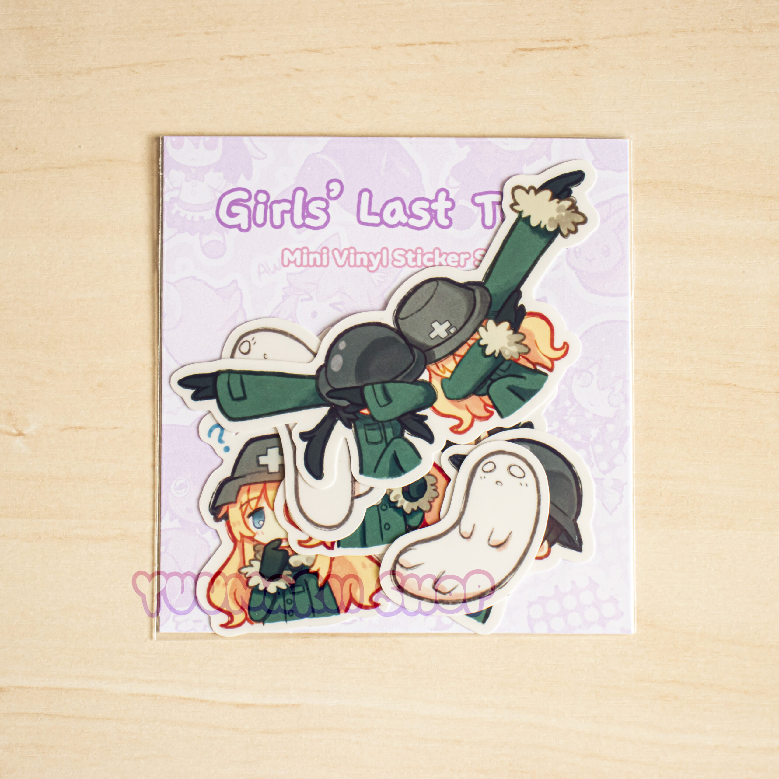 A mini vinyl sticker set containing 7 different characters from the show “Girls’ Last Tour”.