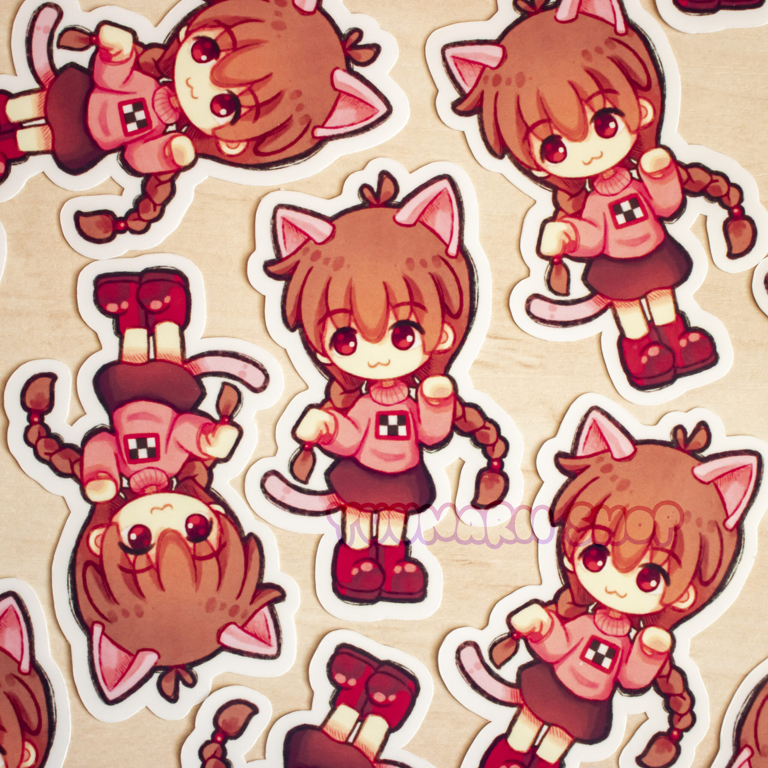 A very cute set of 3 different Madotsuki vinyl stickers. Madotsuki is the main protagonist of Yume Nikki. Stickers are available separately, or as set. The set features Madotsuki holding her knife, Madotsuki wearing the cat effect, and Madotsuki using the flute effect.