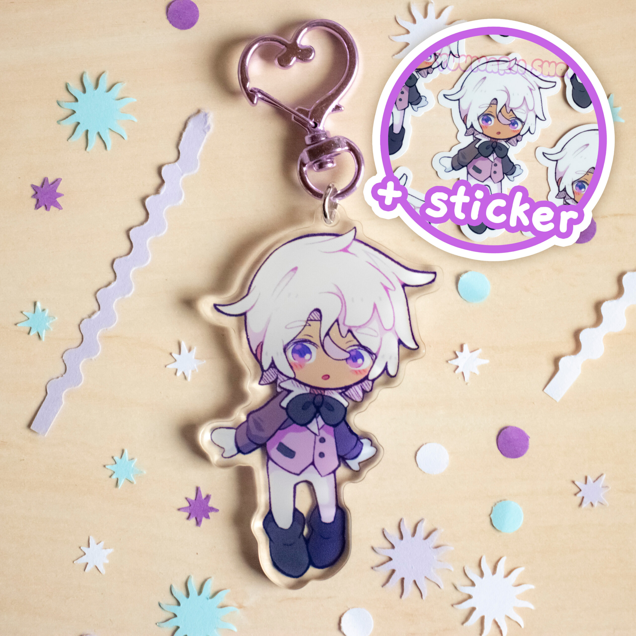 Two adorable keychain designs featuring Vanitas and Noé from “The Case Study of Vanitas”. Each come with a cute heart shaped clasp. Stock is limited.